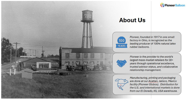 Pioneer has been making latex balloons since being founded in 1917 as Pioneer Rubber Company and is still recognized as a leading producer of 100% natural latex rubber balloons.